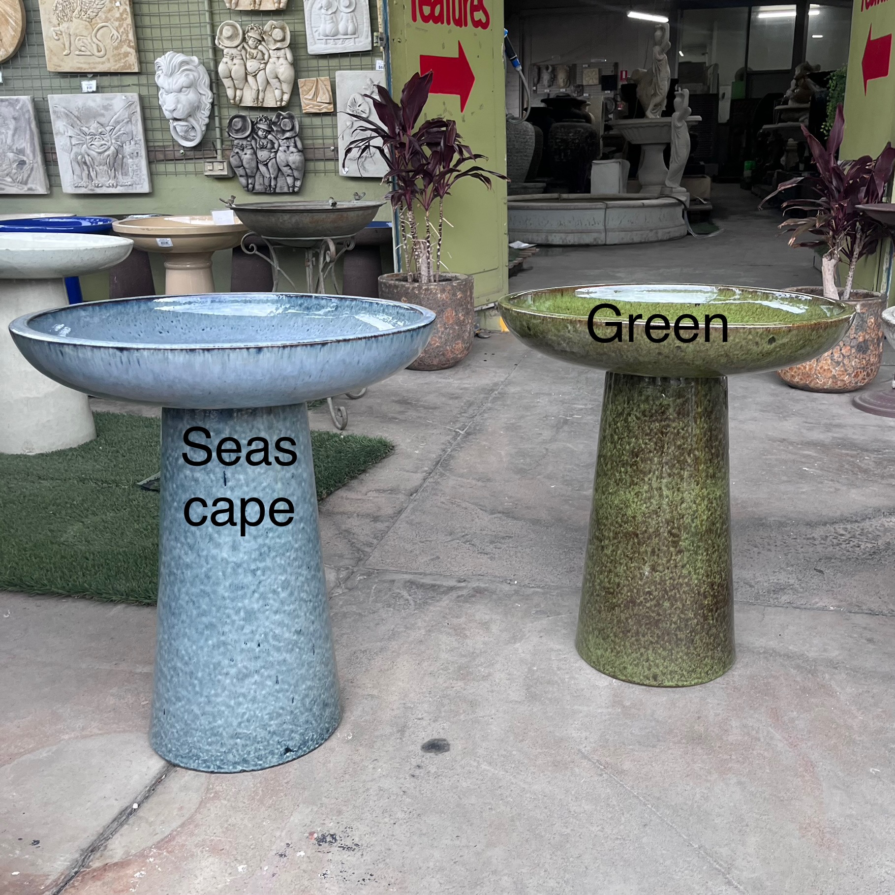 Please note that the colour of the glaze will vary slightly from birdbath to birdbath.